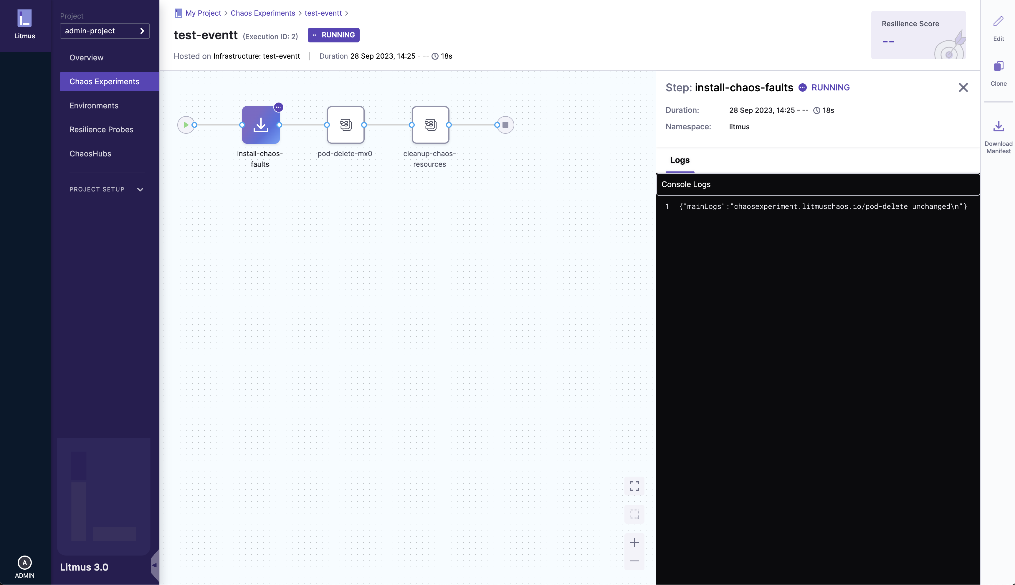In the Chaos experiment page, and click on the play icon for the specific schedule you wish to re-run: