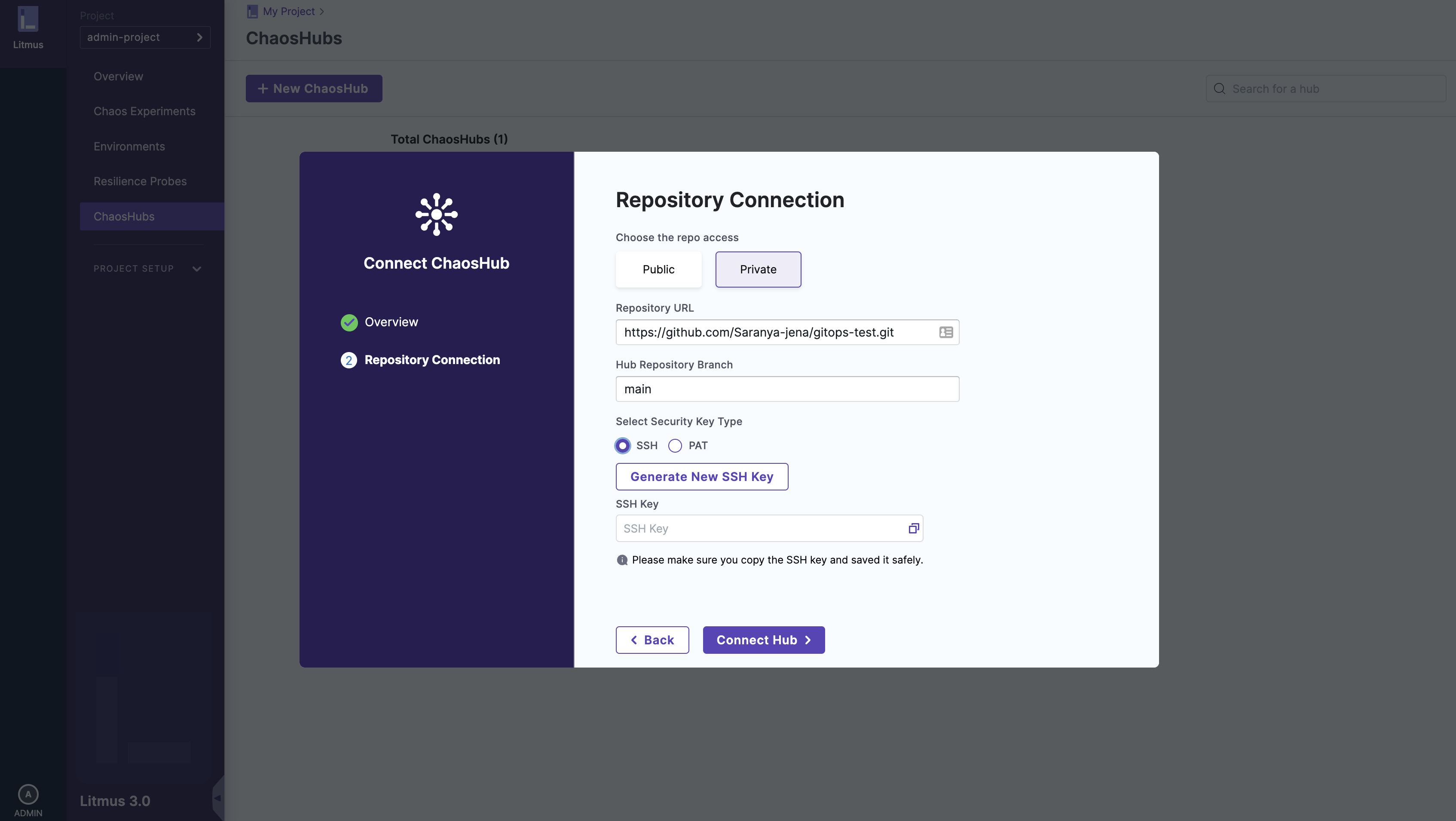 By default, a public ChaosHub is provided when the ChaosCenter is installed for the first time.